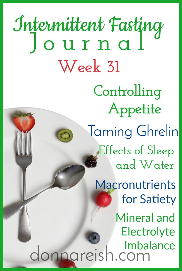 In Episode 31 of Donna’s Intermittent Fasting Journal, Donna Reish, author of 100 curriculum books (for kids!), blogger, and IF teacher, teaches about how to control appetite/hunger/cravings/ghrelin. She begins the episode by giving her and her husband’s update—down over 100 pounds between the two of them in ten months with just over and under 20 pounds each remaining! She describes how fasting brings out various food sensitivities that might have been dormant or unknown prior to fasting, and how she has been having sugar headaches despite loving sugar her entire life! This has caused her and her husband to reduce their sugar intake somewhat. Donna then reviews some info from Episode 30 about the hunger hormone ghrelin, including where and how it is released. Next, she describes the food control that IF provides in general, including regulating blood sugar and insulin, healing the gut, providing more pronounced leptin signals, and more.