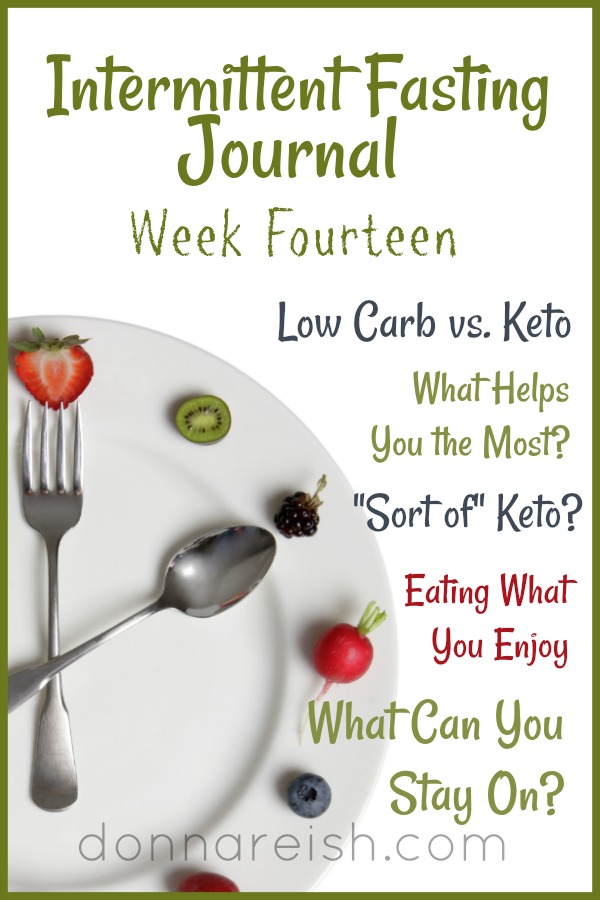 In this episode, blogger and Daily Intermittent Faster, Donna Reish summarizes her fourteenth week on Daily IF, including her week of carb counting while IF (under 50 net carbs)–and the effect this had on her weight and her enjoyment. She explained how the carb counting took precedence over the control of the eating window–and how she would do that differently if she ever decided to count carbs more often. Then Donna explained the difference between low carb eating and keto eating–and why a person can seldom “sort of keto” with good results. In “Listener Lessons,” Donna dives into the three things factors to consider in determining what to eat in your eating window: a) food that gives you the nutrients you need; b) food that makes you feel good (i.e. no carb comas or brain fog); and c) food you enjoy. Daily IF can meet all of these criteria! Finally, she emphasizes the importance of following something that you can stay on!