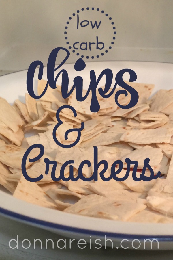 I have tried to make low carb crackers in the past. And even with my Very Low Carb Flour Mix, I really didn’t like any that I tried. When you think about the Power of Dilution that I have discussed here on the blog (along with my ten year old palate!), it makes sense that I wouldn’t like almond flour or my VLCF mix crackers. There is no diluting the flour flavors in crackers! After all, crackers are mostly whatever flour they are made of. Since I am not “keto,” I don’t really want to make all-cheese crackers or crackers made with mozzarella, eggs, and almond flour. Way too calorie/fat dense for the non-keto person. But I NEED crispy. I NEED salty. I NEED savory crisps to have cheese, meats, cheese ball, cheese spread, savory cream cheese dips, etc., with. (And a little lower in the blog post, I have SWEET crackers–substitutions for graham crackers and such–to have with sweet cream cheese dips, peanut butter cream cheese spread, chocolate chip cheeseballs, low carb frostings, and more. And I discovered how to make both of these quickly out of low carb tortillas, lavish, and pitas. So here you go…