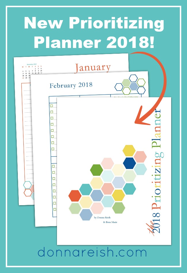 The Prioritizing Planner for 2018 is here–and it is way more than a calendar or even a planner. It’s colorful and lovely. It helps even the “least organized” finally get organized and reach their goals. Tired of the old school planners that have every hour laid out for you to fill in (but without the understanding of what to put in those “hours” except for appointments and kids’ activities?)? Do you wish you didn’t have to take an average planner and tweak every page in order for it to be usable for your productivity habits and activities? Moreover, do you wish you had a planner that TEACHES you how to prioritize and be productive simply through using it? If so, the Prioritizing Planner might be just what you are looking for!