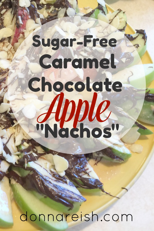 But some apples are better suited to some gooey, nutty, creamy, or crispy combination. When a person goes sugar-free, apple treats are often forgotten. Apple pie, apple dumplings, apple crisp—and especially caramel apples. Those dishes are extremely sugar-laden and can be hard to duplicate. However, caramel-chocolate apples CAN be made sugar free! Especially if you make my Caramel-Chocolate Apple Nachos!