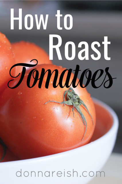 I recently froze spaghetti sauce with tomatoes from our garden. The recipe I used was fairly simple. (I will share that another time!) However, in an effort to get more flavor out of our tomatoes–and into some of Ray Baby’s low carb fare–I began the sauce with roasted tomatoes rather than just chopped tomatoes.