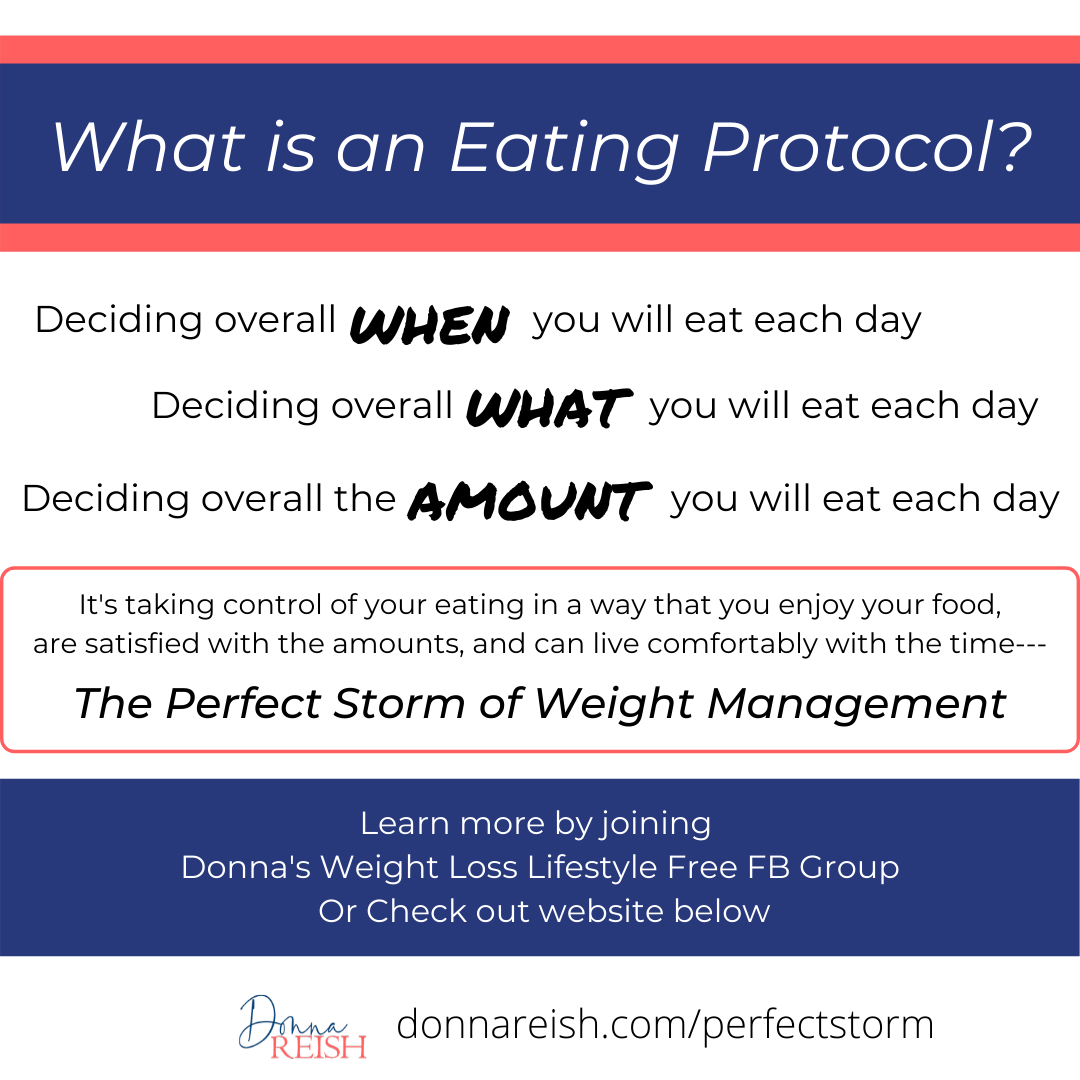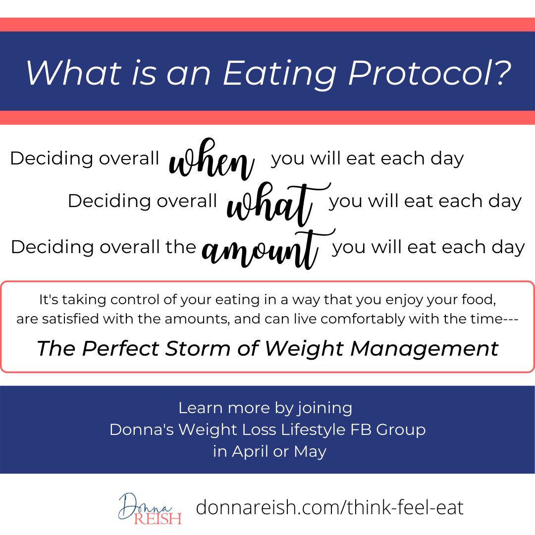 Creating an Eating Protocol is not just following a diet. It is deciding for yourself what you can do (even in a Pandemic!) and that gives you the results you are seeking. It is taking control of your eating time, foods, and amounts. It is freeing and life changing!