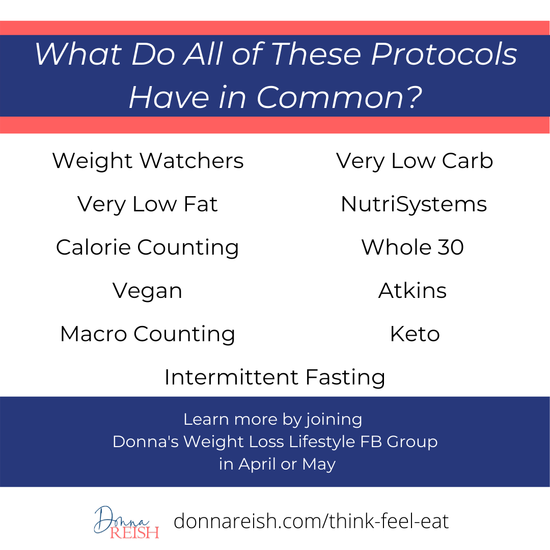 I then leave listeners with some Food Protocol questions for next week….what do all food plans/diets have in common? What worked for you for weight loss before? What can you do right now?