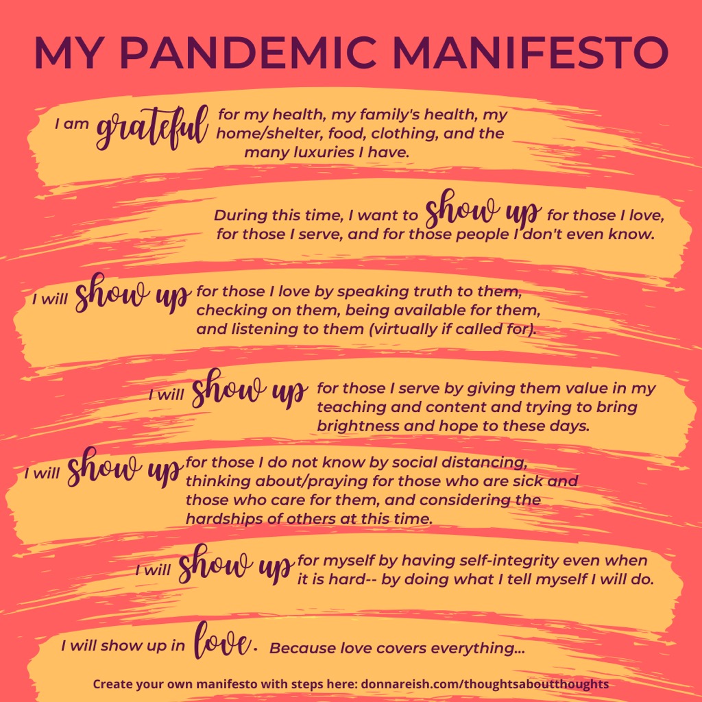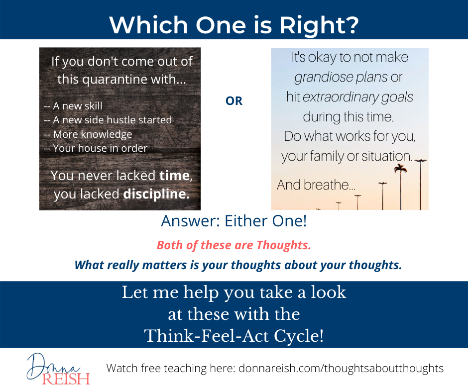 Are your “pandemic thoughts” troubling you? Do you see graphics and memes telling you that you should be doing more—you’re homebound after all? Do you see graphics and memes telling you that you should just feel how you feel and not worry about getting anything done?